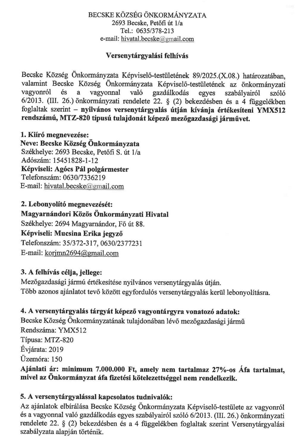 Versenytárgyalási felhívásKészült: 2025. október 15. | Találatok: 74 Az Ajánlati lap ide kattintva tölthető le >>>